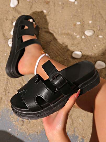 2025年夏季新款时尚百搭女士凉鞋,尺码35-43,加大码防滑耐用休闲拖鞋 - 黑色 - 查看 1