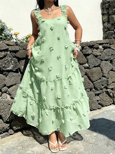 Sunnyshic 大码方领吊带A字连衣裙