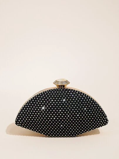 超閃亮菱形網格不對稱晚宴包 - 黑色 - 查看 1