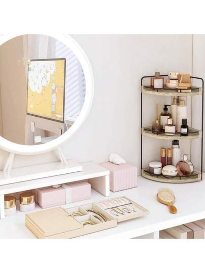 Tomnk 3 Tier Rustic Bathroom Organizer, Corner Bathroom Counter Organizer, Wood Countertop Storage Tray For Vanity, Kitchen, Bedroom - 淺棕色 - 查看 1