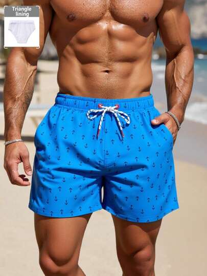 Surfspeed 男士夏季夏威夷风锚印花沙滩短裤
