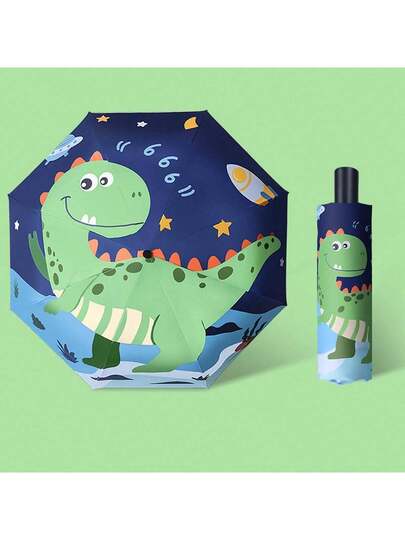 1把恐龙图案半自动折叠伞,加厚伞骨设计,儿童款,轻便可折叠,适合儿童、男孩和女孩,可用于学校和幼儿园,春夏必备,伴娘礼物,房间、卧室装饰,海滩、旅行,男女皆宜,度假必备,可爱小物 - 綠色 - 查看 8