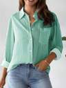 独特、美丽、时尚、百搭、小众、奢华、年轻、时尚的蓝色条纹衬衫,配有假口袋和前纽扣开合