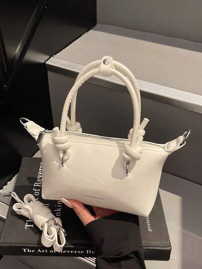 女士面料 PU 迷你简约单肩包、饺子包、休闲可爱时尚手提包、时尚手柄钱包、适合少女、女大学生、新秀和白领人士的手提包,非常适合办公室、大学、工作、商务、通勤 - 白色 - 查看 1