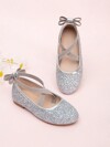 女孩金屬質感蝴蝶結裝飾瑪麗珍滌綸時尚平底鞋