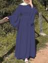 女士休閒純色長袖連衣裙,波浪袖設計,適合春夏季節