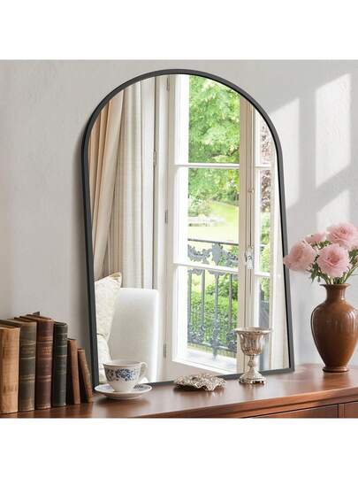 Sweetcrispy Arched Black Bathroom Mirrors For Wall, Bathroom Mirrors For Over Sink, Metal Framed With HD Shatter-Proof Glass For Entryway, Living Room, Bedroom