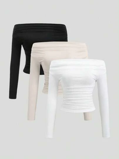 Sweetra 3 件套百搭单肩长袖短款上衣,修身显瘦,亲肤,百搭女士上衣套装