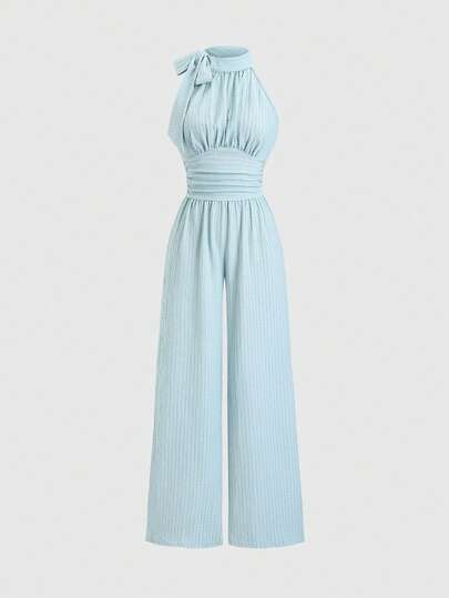 Sweetra 女士新款时尚百搭束腰无袖吊带针织上衣+连体裤
