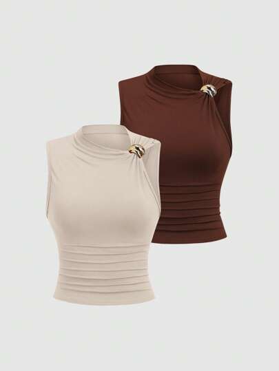 Sweetra 女式褶饰修身夏季上衣 - 彩色 - 查看 1