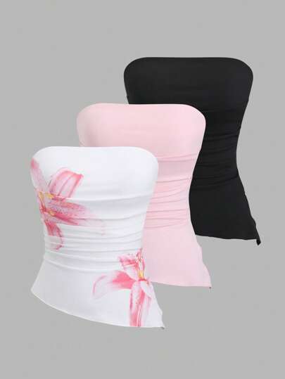 Sweetra Y2K 性感褶饰不对称下摆短款吊带背心 - 彩色 - 查看 1