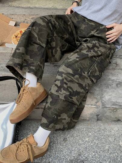 DAZY 女士休闲迷彩水洗牛仔裤,简约时尚,适合日常穿着的街头服饰 - 軍綠色 - 查看 1