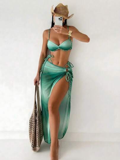 Swim SXY 夏季新款女士三件套渐变编织肩带比基尼套装,系带泳衣和沙滩裙泳装三件套,女士沙滩两件套,三件套泳衣套装,比基尼三件套,沙滩裙套装,泳衣三件套,泳衣罩衫,女士两件套Y2K泳衣,女士泳衣,收腹沙滩装,女士套装,带罩衫的比基尼套装,女士两件套泳衣,女士节日套装,女士优雅派对礼服,女士度假套装,女士沙滩罩衫