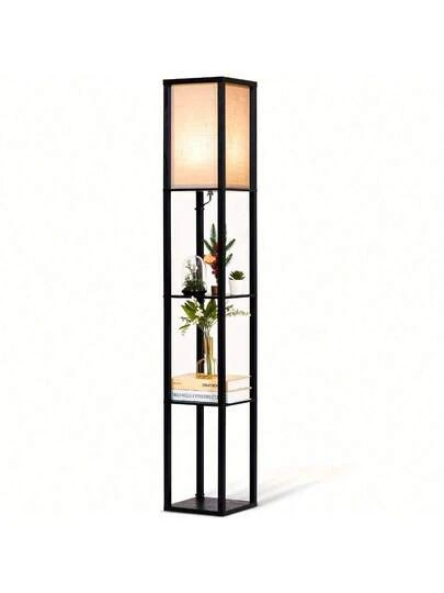 Floor Lamp With Shelves 3-Tier Wood Standing Lamp And LED Light For Living Room, Bedroom, Office, Black - 英規插(220-240V) - 查看 1