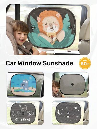 2 件装卡通图案婴儿汽车侧窗遮阳帘,带吸盘,可折叠耐用 80 克网状面料,有效阻挡 92% 的 UVA 和 UVB 射线,四季通用。 - 黑色 - 查看 10