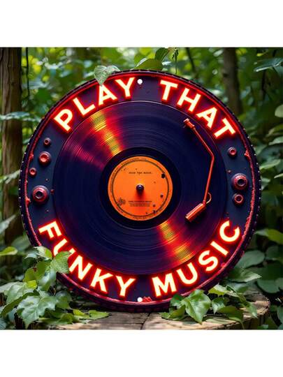 2D 平面 - 1 件复古唱片金属标牌 - 8x8 英寸复古墙面装饰,带有“PLAY THAT FUNKY MUSIC”霓虹灯文字,2D 平面印刷,适合家庭、车库、咖啡厅、餐厅、车库墙面艺术 | 复古墙面艺术 | 金属表面,唱片墙面艺术(随机孔样式) - 彩色 - 查看 9