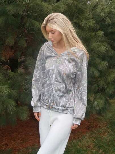 Sydney Algeri 女士秋冬外出街头风情侣同款/情侣同款/基础款/外出针织迷彩保暖内衬拉链宽松长袖卫衣 - 彩色 - 查看 1