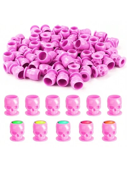 TOEDO 纹身墨水杯 200个装 塑料睫毛胶环 一次性骷髅纹身墨水杯 颜料墨水杯,睫毛胶架,睫毛嫁接用品,纹身配件 - 彩色 - 查看 3