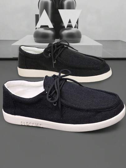 TOLLN 1 双男士亚麻鞋面橡胶底防滑透气舒适休闲鞋 - 黑色 - 查看 1