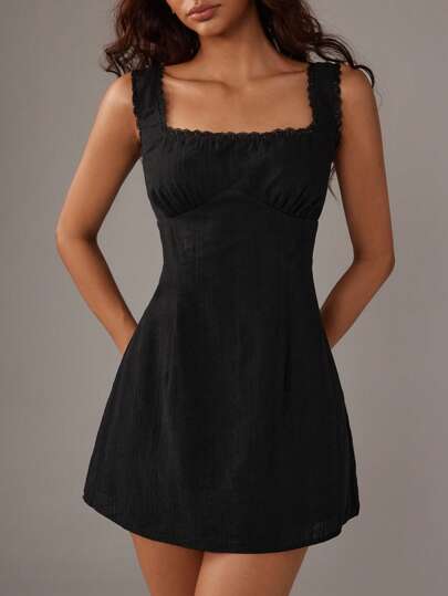 TRNVIE 花卉蕾丝边修身纹理迷你 A 字连衣裙,春夏 - 黑色 - 查看 1