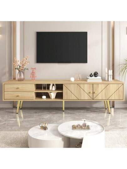 TV Cabinet 160 Cm With Gold Feet, Two Drawers And Uniquely Designed Doors - 卡其色 - 查看 1