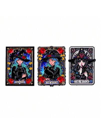 塔罗牌女巫图案胸针,男女通用,珐琅材质,徽章,翻领别针,背包装饰,珠宝配饰,礼品 - 黑色 - 查看 8