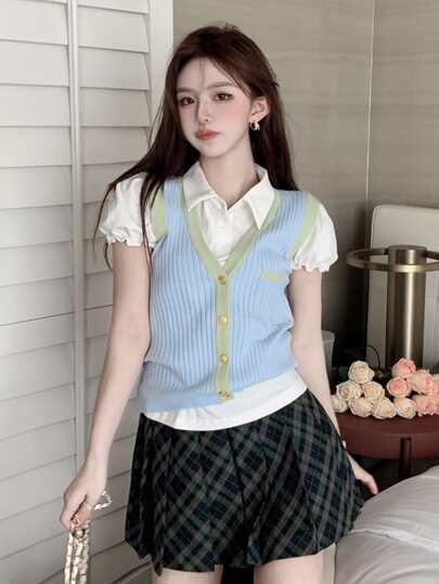 格子百褶裙裤 - 彩色 - 查看 6