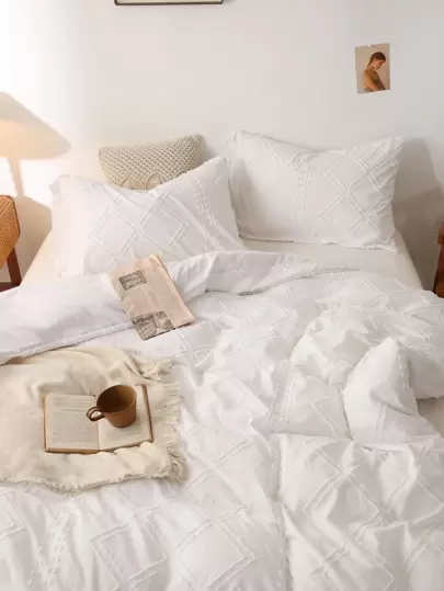 流蘇細節被套套裝不附帶內芯 - 白色 - 查看 1