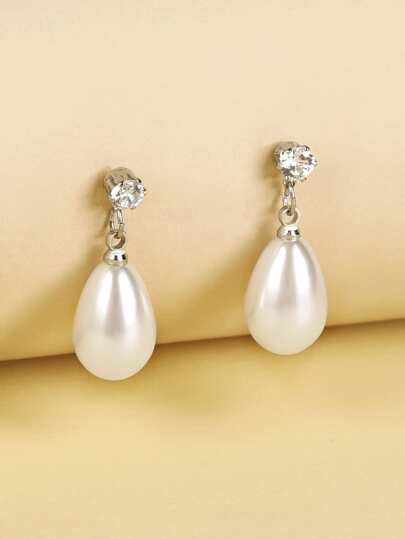 泪珠珍珠简约时尚休闲耳环 - 白色 - 查看 1