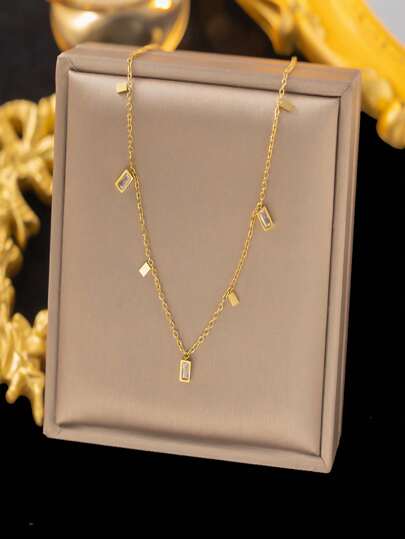 水滴形不锈钢项链,轻巧,奢华简约设计,用途广泛且抗锈蚀,韩式/日式风格 - 金色 - 查看 1