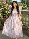SHEIN 青少年女孩印花荷葉邊連衣裙