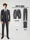 SHEIN 4 件青少年男孩绅士套装:灰色/黑色西装外套 + 背心 + 白衬衫 + 裤子,优雅正式西装,适合生日派对、庆典、婚礼、洗礼、休闲场合