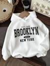 SHEIN Leap Crew ModeFlare Wear 纽约布鲁克林印花连帽衫,青少年女孩款,休闲宽松加厚卫衣,适合秋冬季穿着