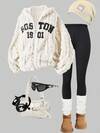 SHEIN ChillGRL 2 件青少年女孩复古蓬松连帽衫和紧身裤套装,适合日常穿着的休闲装,秋冬