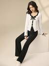 SHEIN 2 件套少女优雅白色针织方领蝴蝶装饰短袖 T 恤 + 修身喇叭长裤,2 件套服装