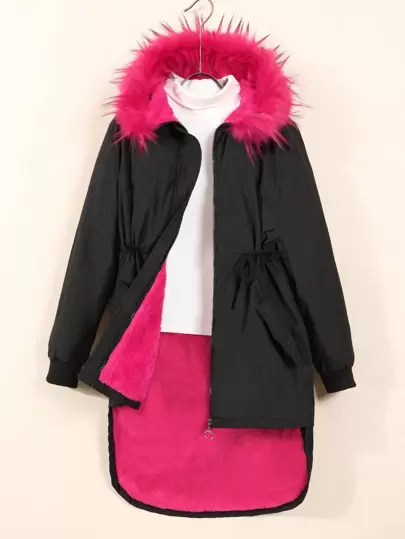 青少女休閒帽兜帕卡上衣附加絨毛 - 黑色 - 查看 5