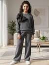 Girlism 少女秋冬字母印花落肩长袖连帽衫带口袋阔腿裤休闲套装,适合运动、商务休闲