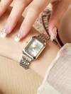(女孩)简约高颜值时尚水钻圆点刻度表盘钢表带石英表,适合生日礼物,光棍节 1 件/套