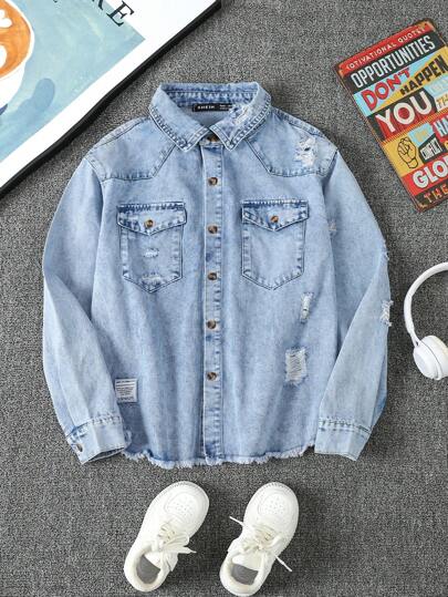 青少年男孩的休閒街頭風格破洞牛仔夾克