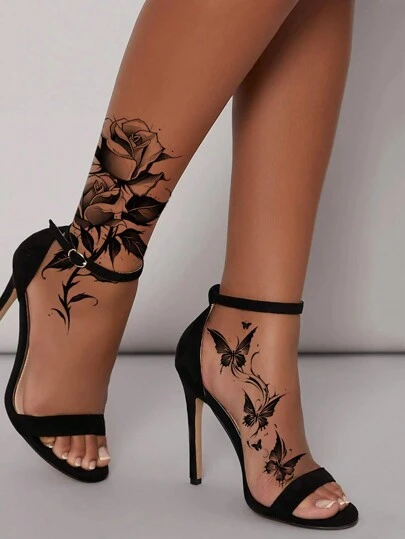临时纸质纹身贴纸,2 件黑色蝴蝶和玫瑰风格花卉防水临时纹身贴纸,适用于女性手臂、大腿和脚,多用途男女通用人体艺术假纹身,适合您的手臂、胸部、大腿、脚踝和腹部 - 易于粘贴和去除 - 黑色 - 查看 10