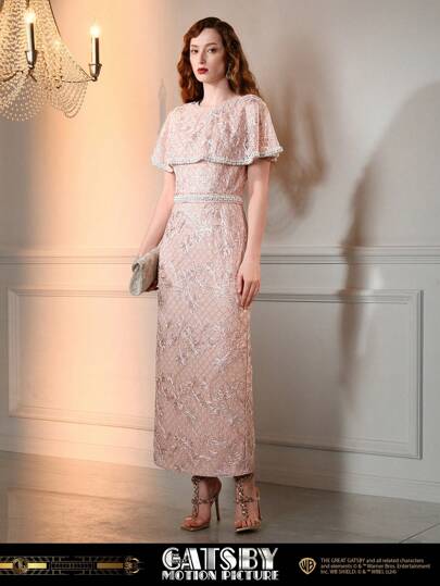 The Great Gatsby x MOTF 亮片披肩袖仿珍珠细节晚礼服 - 粉色 - 查看 1