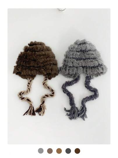 加厚保暖针织兔毛护耳帽,适合秋冬旅行摄影,蓬松兔毛混纺保暖护耳针织帽,小头围 - 彩色 - 查看 12