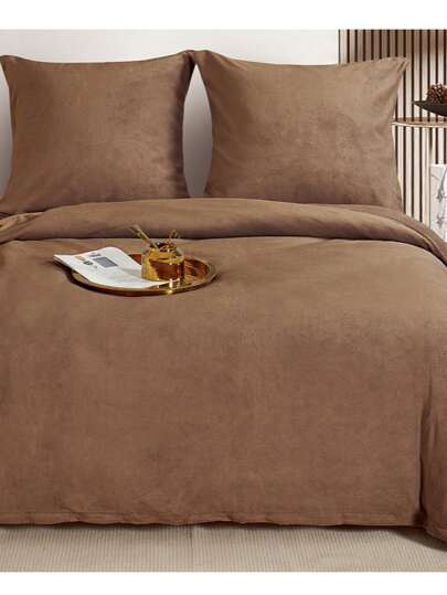 加厚保暖牛奶绒纯色床上用品被套,冬季 - 咖色三件組(200*220CM) - 查看 1