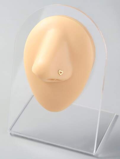 Tkool 1 件钢制尖头心形鼻环耳钉鼻钩首饰情人节 - 金黃色 - 查看 1