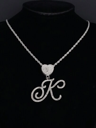 銀色連鎖字母吊墜項鍊,精緻字母吊墜附有a到z的不對稱字母陳述,不對稱字母頸鏈,禮品盒包裝 - 銀色 - 查看 1