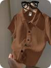 SHEIN LMoss Kids 1入年輕男孩寬鬆休閒翻領提花短袖襯衫