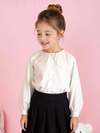 SHEIN Genkimix Kids 年轻女孩优雅简约翻领泡泡袖修身纯色衬衫,春秋季百搭上衣