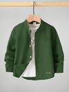 儿童男孩休闲立领纽扣衬衫,卡其色衬衫,基本款上衣,返校季,适合花园、海滩、生日