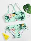 年轻女孩花卉十字交叉比基尼套装夏日海滩