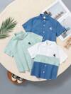 SHEIN 男童纯色口袋拼接衬衫,时尚秋冬款